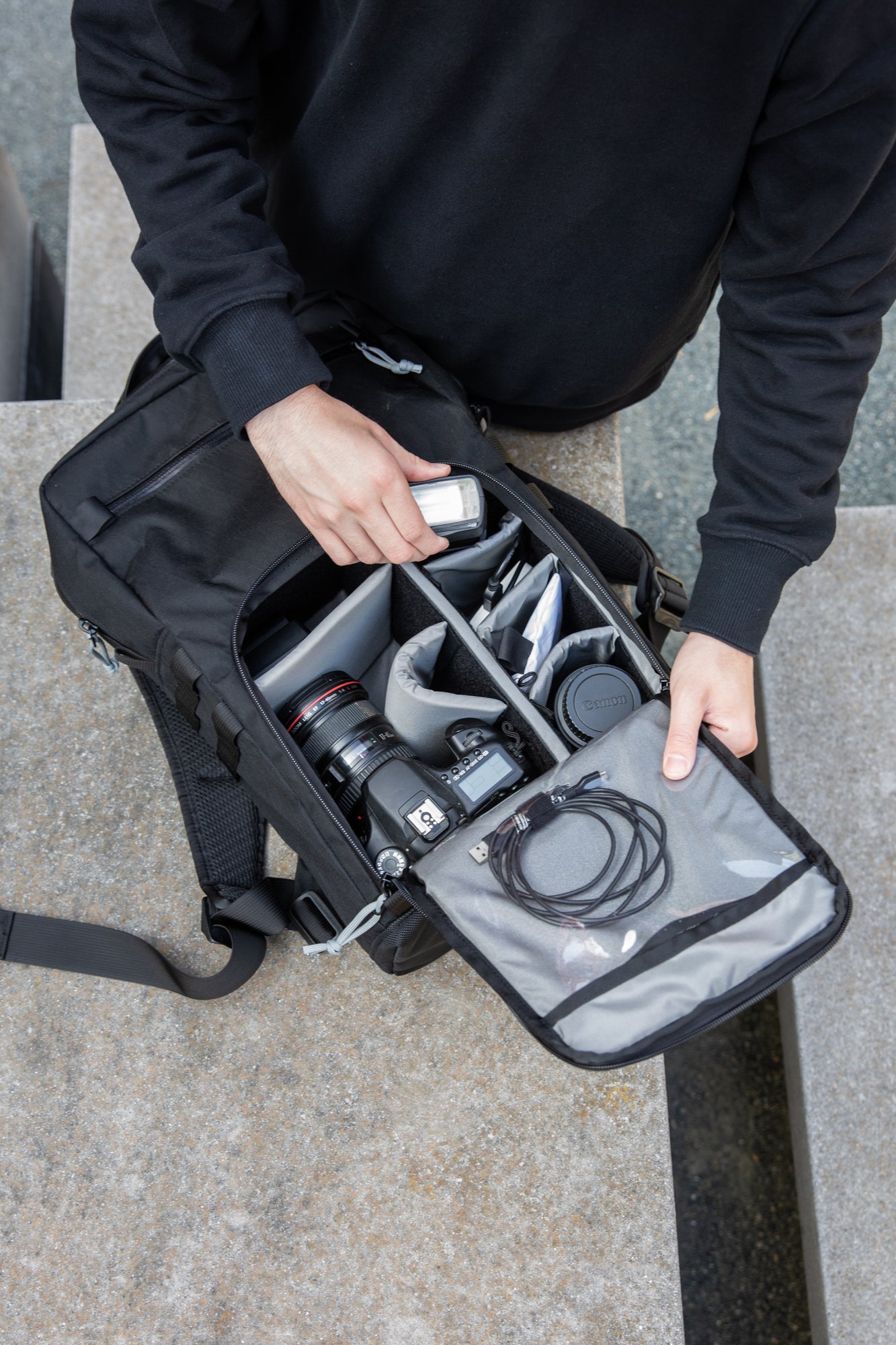 Built for creatives. Engineered for daily wear with customizable padded dividers and weatherproof mil-spec materials to protect your gear.